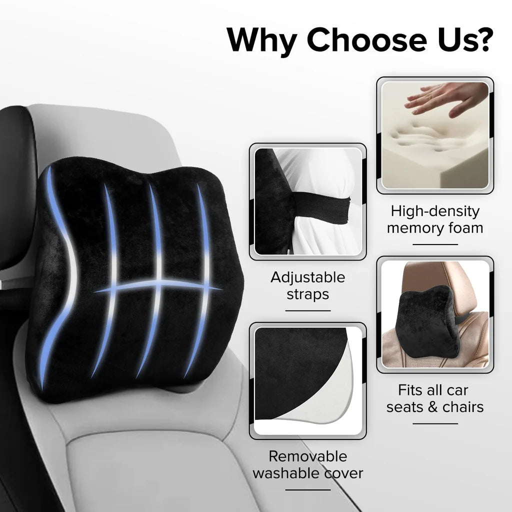 - Designed to fill the gap between your car seat and your head, neck, and shoulders, while providing lower and middle back support to alleviate pain and muscle tension.